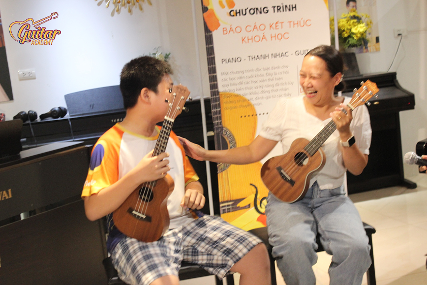 Buổi báo cáo kết thúc khóa học không chỉ là dịp để các học viên thể hiện tài năng mà còn là minh chứng cho sự tiến bộ vượt bậc của mọi người. Các học viên đã mang đến những màn biểu diễn đầy cảm xúc, làm nức lòng quý phụ huynh và thầy cô. Mục tiêu của Guitar Academy không phải là đào tạo nghệ sĩ chuyên nghiệp, mà là giúp mỗi học viên có thể tỏa sáng theo cách riêng của mình sau khi hoàn thành khóa học.