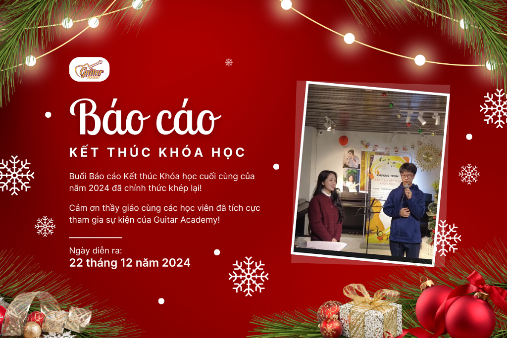 Trong không khí se lạnh của những ngày cuối năm, Guitar Academy Láng Hạ đã khép lại mùa biểu diễn cuối khóa 2024 bằng một đêm nhạc đầy cảm xúc diễn ra vào tối ngày 22 tháng 12. Đêm diễn không chỉ là dịp để các học viên thể hiện thành quả học tập của mình mà còn là nơi giao hòa giữa âm nhạc và không khí Giáng sinh ấm áp đang tràn ngập khắp phố phường.