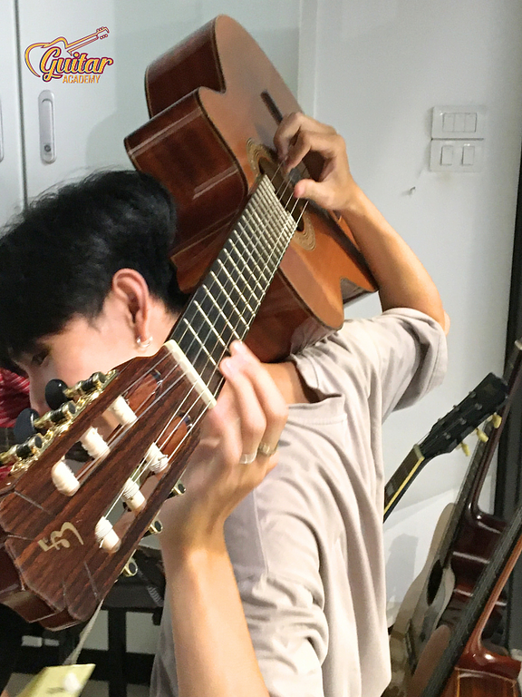 Cuối cùng là cơ sở đầu tiên của Guitar Academy, cơ sở Trần Đại Nghĩa, “địa bàn hoạt động” của giáo viên guitar cổ điển Duy Trường. Thầy Trường là giáo viên duy nhất tại Guitar Academy chuyên về dòng guitar cổ điển, với lối chơi mạnh mẽ nhưng lại rất cảm xúc. Nhưng yên tâm, thầy hoàn toàn có thể cân được dòng guitar cover – đệm hát đó!
