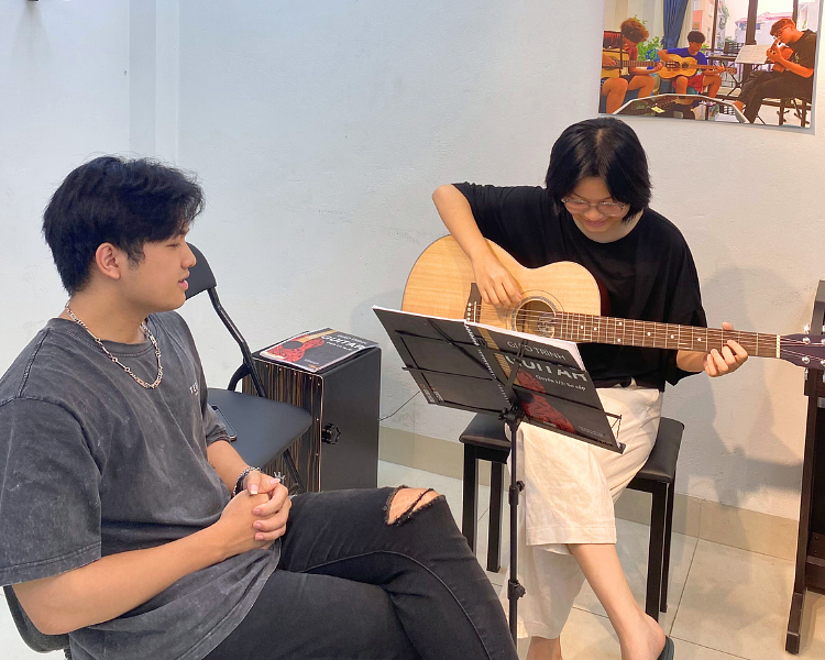 Không chỉ học guitar, các bạn còn chia sẻ những câu chuyện thú vị, cùng nhau cười đùa và thậm chí còn lên kế hoạch cho một buổi biểu diễn mini! Tiếng cười luôn rộn vang trong căn phòng guitar ấy. Đúng là “học mà chơi, chơi mà học” theo cách rất Gen Z!