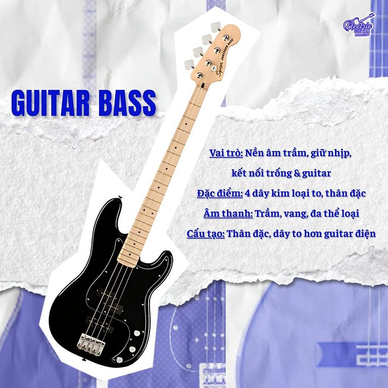 Guitar bass, hay đơn giản là bass, là người hùng thầm lặng trong mọi ban nhạc. Khác với guitar thường, bass thường chỉ có 4 dây (một số loại có 5 hoặc 6 dây) và tạo ra âm thanh trầm, sâu lắng hơn rất nhiều.