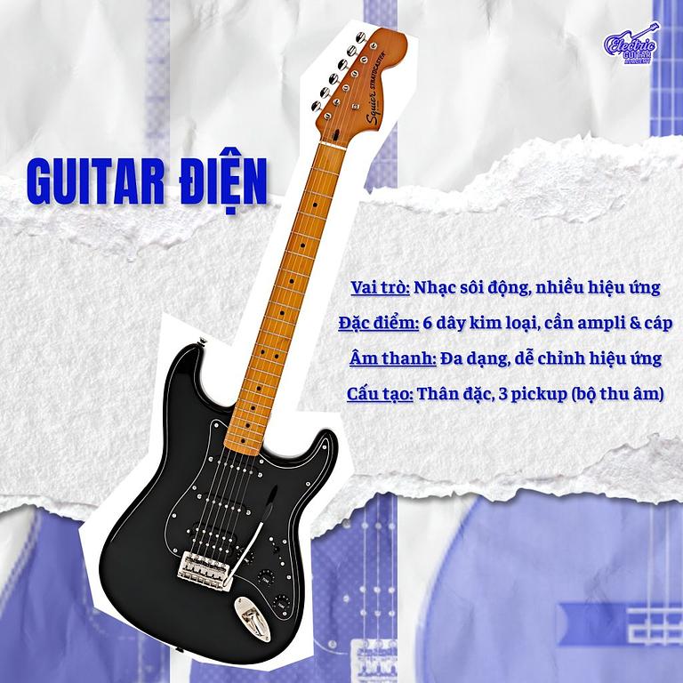 Guitar điện là biểu tượng của sự phóng khoáng và sáng tạo trong âm nhạc. Khác với guitar thường, guitar điện có thân đặc hoặc bán đặc và phụ thuộc hoàn toàn vào hệ thống âm ly và các hiệu ứng để tạo ra âm thanh.